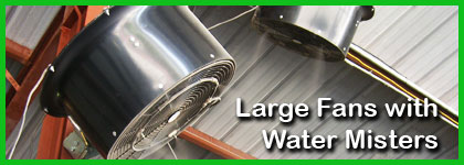 Multiple Large Fans with Water Misters to stay Cool.